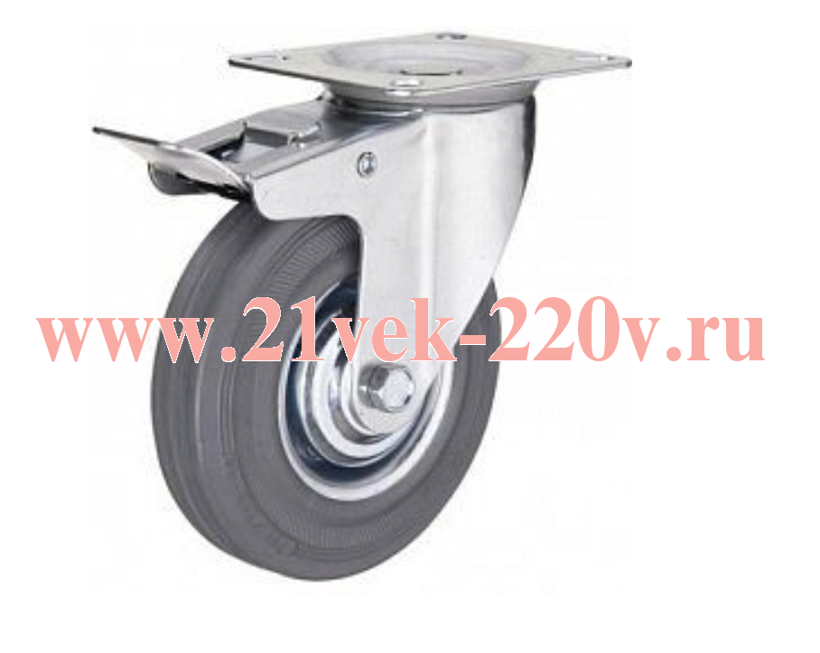 Колесо аппаратное поворотное п/п обод сер. резина подшип.скольж под болт М10 D50 с тормозом (пакет)