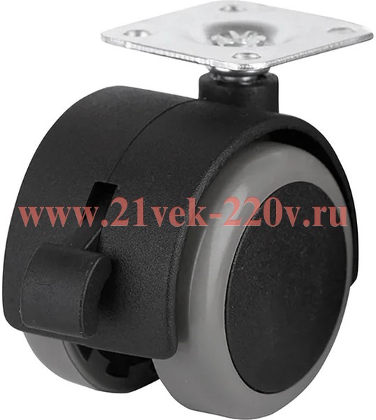 Колесо мебельное поворотное обрезин.пластик черн. площадка D40 с тормозом (пакет) Tech-Krep