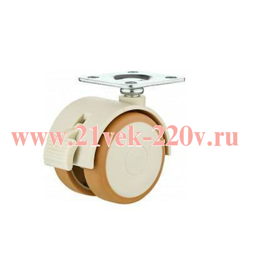 Колесо мебельное поворотное пластик беж. площадка D40 с тормозом (пакет) Tech-Krep