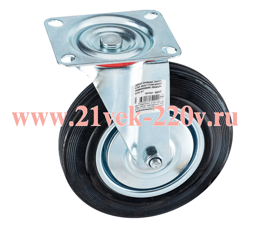 Колесо промышленное поворотное стал. обод с резин. шиной и роликоподшип. площадка D200 б/т Tech-KREP