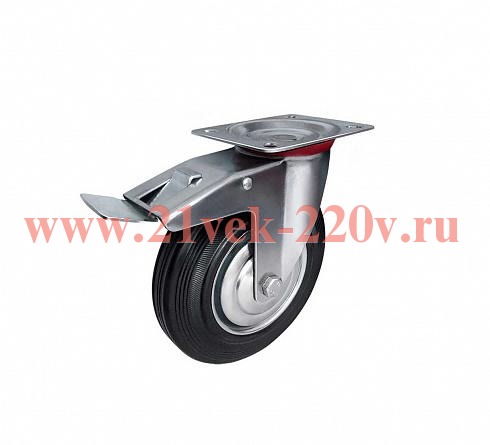 Колесо промышленное поворотное стальной обод с резиновой шиной и роликоподшипником площадка d100