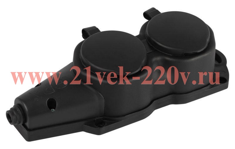 Каучуковая колодка ЭРА KX-2e-B-IP44 2 гнезда, черная, с заземлением, для подключения кабеля (без разбора корпуса). Съёмная крышка. IP44-защита от пыли и влаги. Максимальная мощность 16А/3500Вт. Для кабеля сечением до 3x2,5мм2.