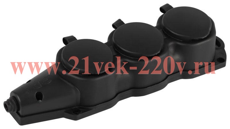 Каучуковая колодка ЭРА KX-3e-B-IP44 3 гнезда, с заземлением, черная, для подключения кабеля (без разбора корпуса). Съёмная крышка. IP44-защита от пыли и влаги. Максимальная мощность 16А/3500Вт. Для кабеля сечением до 3x2,5мм2.