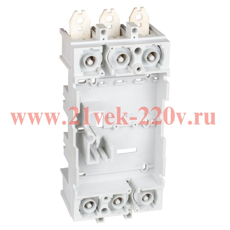 В комплект входит фиксированная часть втычного исполнения и части для преобразования выключателя в втычную версию. Фиксированная часть является основанием для крепления подвижной части втычного выключателя и может быть установлена различными способами на монтажную панель с передним или задним присоединением. Универсальные выводы фиксированной части обеспечивают переднее и заднее ориентируемое подключение (горизонтальное и вертикальное). Для выключателей YON MD400...630 320-630А.