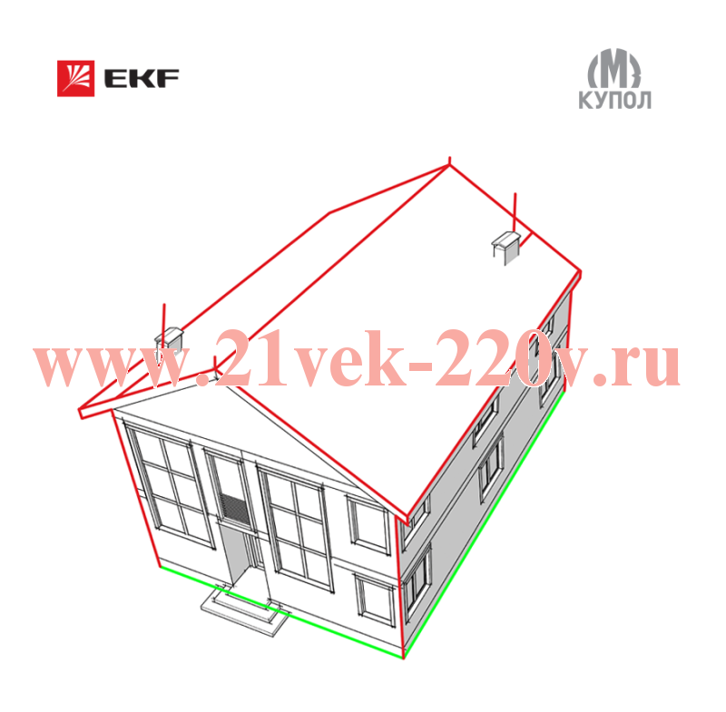 Готовый Комплект молниезащиты частного дома габ. 15х18м EKF PROxima (артикул lp-15x18) предназначен для монтажа системы молниезащиты частного дома габаритом до 15*18*10м. Молниеприемная сетка монтируется на кровле и соединяется с заземлением с помощью проложенных по фасаду токоотводов. Заземление отводит ток молнии от системы молниезащиты в грунт. Элементы молниезащиты и заземления изготовлены из стали с защитным покрытием – термодиффузионное цинкование, которое надежно защищает от коррозии в течение всего срока службы.