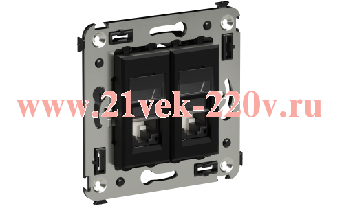 Розетка компьютерная (сетевая) ДКС двойная Rj-45 для скрытой установки, цвета черный матовый.