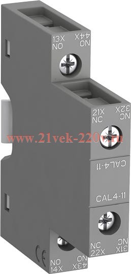 Дополнительный боковой блок АВВ типа CAL4-11 с одним нормально открытым и одним нормально закрытым контактами для контакторов типа AF09-AF96 и NF.
