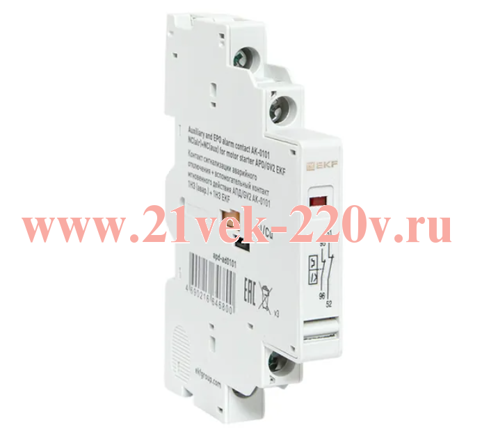 Дополнительный аксессуар для автомата пуска (защиты) двигателя. Блок с двумя контактами, монтируемый на АПД. Один контакт — аварийный, второй — вспомогательный. Контакты механически связаны с главными силовыми контактами АПД. Когда автомат включен, меняется положение и этих дополнительных контактов (нормально-разомкнутые (НО/NO) замыкаются, нормально-замкнутые (НЗ/NC) размыкаются, и наоборот). Аварийный контакт (1НЗ) срабатывает только при отключении защитой. Вспомогательный (1НЗ) работает как обычный доп. контакт. Устанавливаются на корпус АПД сбоку (слева) путем защелкивания. Подключаются к низковольтным цепям управления с помощью винтовых клемм. Используется для АПД-32 и GV2P.
