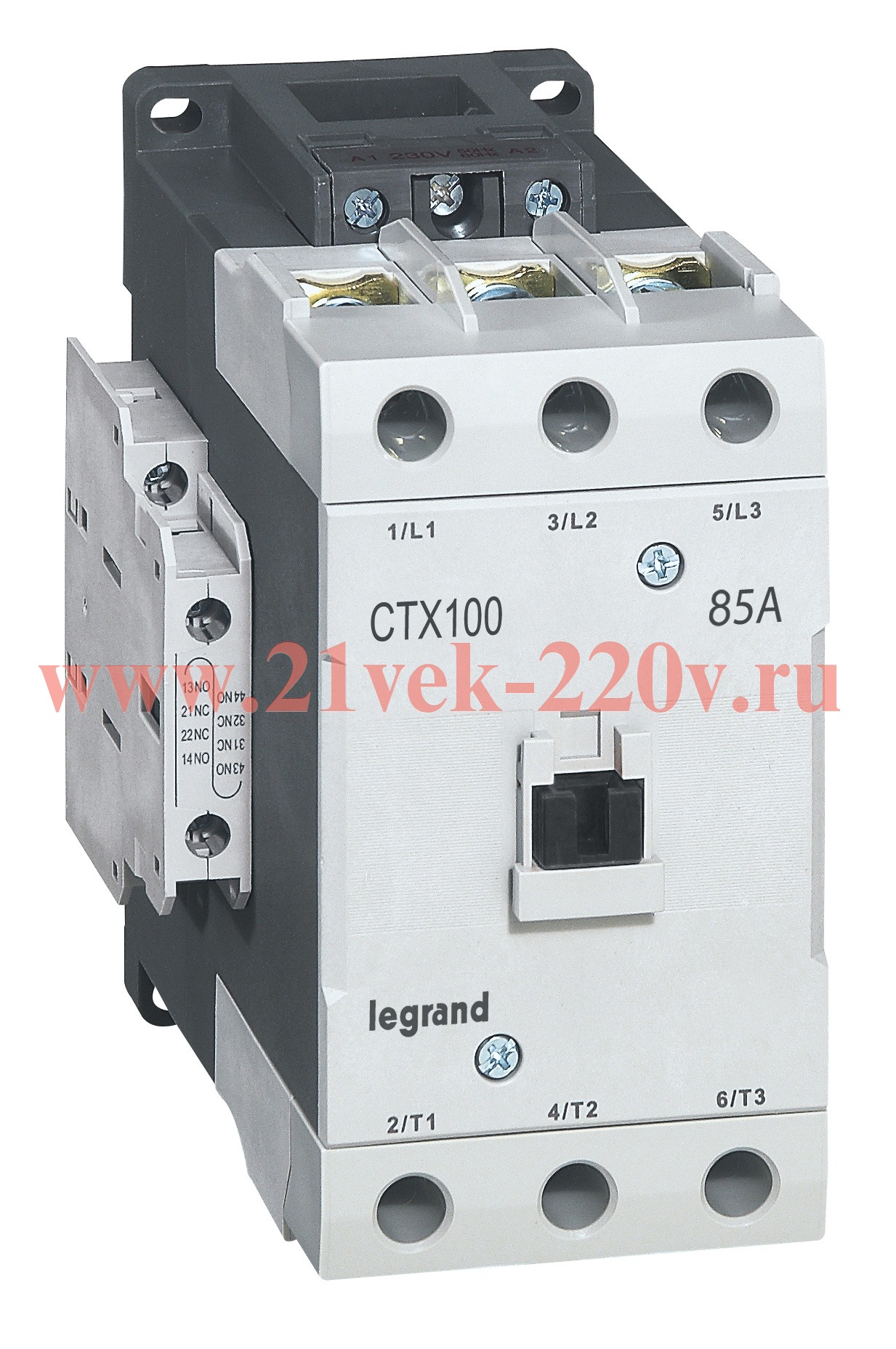 Контактор CTX3 100, трехполюсный, номинальным током 85 Ампер, напряжением 380 Вольт, встроенные вспомогательные контакты 2 H.0. + 2 H.3, винтовые зажимы