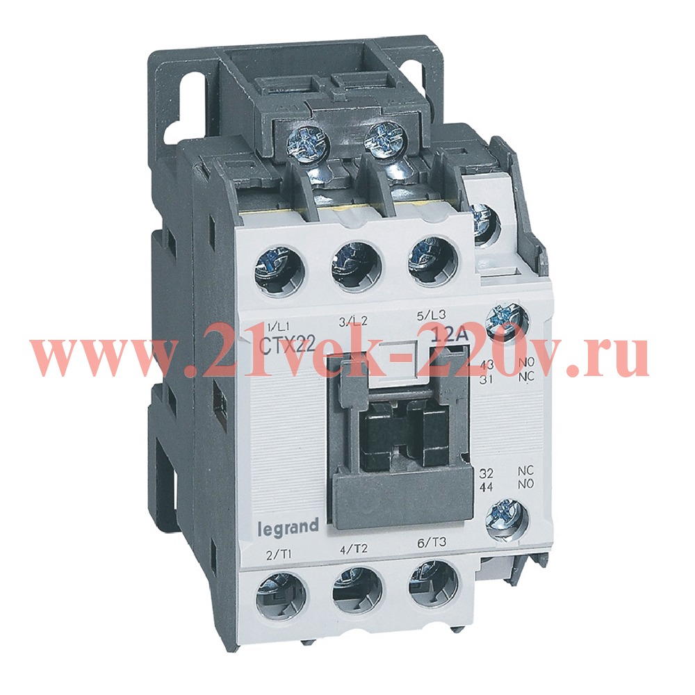 Промышленный, трехполюсный контактор CTX3 22, номинальным током 12 Ампер, 230 В переменный ток, вспомогательный контакт 1 H.0. + 1 H.3.