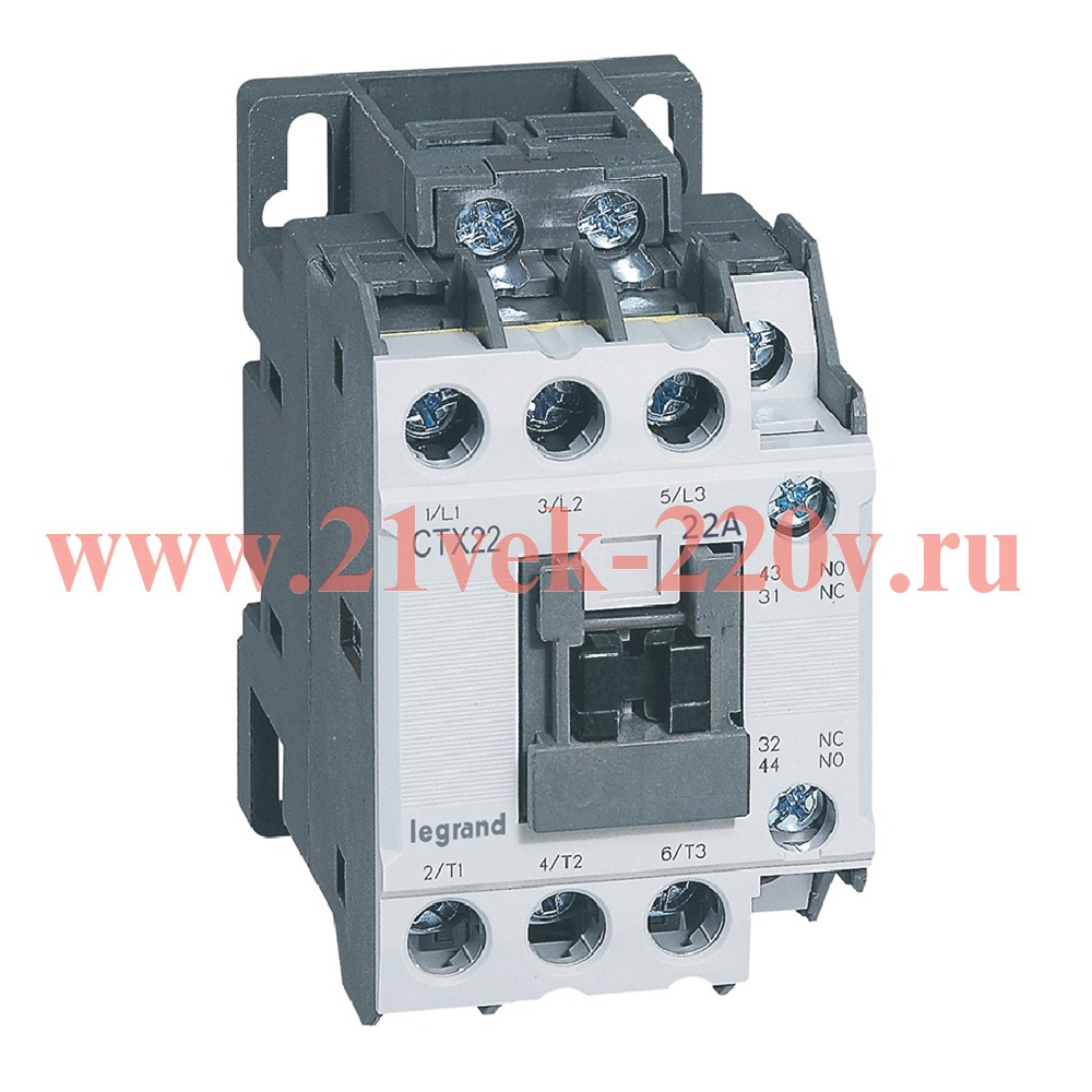 Промышленный, трехполюсный контактор CTX3 22, номинальным током 22 Ампер, 24 В переменный ток, вспомогательный контакт 1 H.0. + 1 H.3.