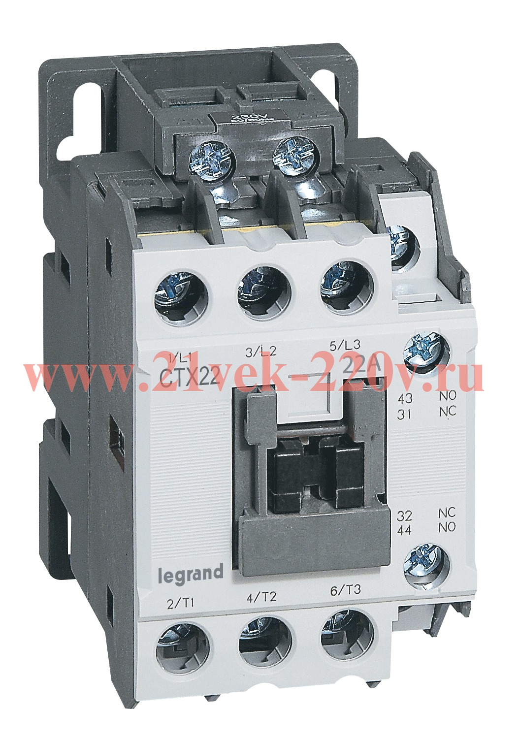 Промышленный, трехполюсный контактор CTX3 22, номинальным током 22 Ампер, 24 В постоянный ток, вспомогательный контакт 1 H.0. + 1 H.3.