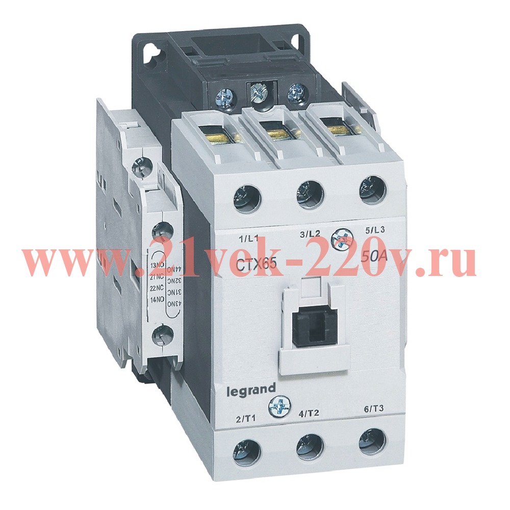 Промышленный, трехполюсный контактор CTX3 65, номинальным током 50 Ампера, 230 В переменный ток, вспомогательный контакт 2 H.0. + 2 H.3., торцевые зажимы