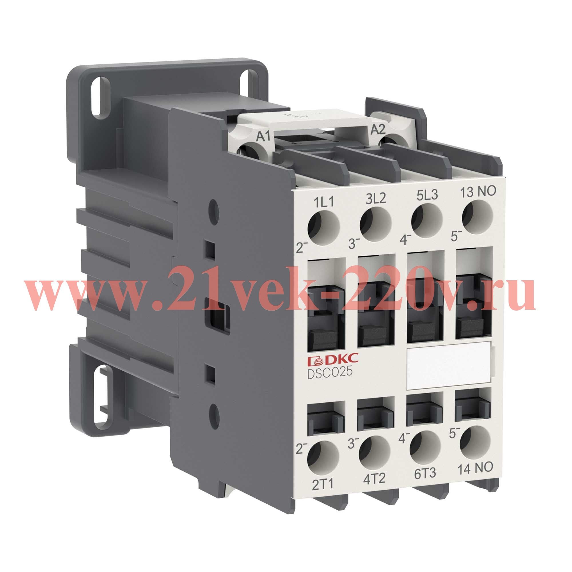 Электромагнитный контактор "YON" DSC025 25 A 12,5 кВт AC3 3P кат.48 В AC 1НО для коммутации асинхронных двигателей, частотных приводов и других высокоиндуктивных нагрузок (категория применения АС-3), а также для работы в тяжелых режимах, таких как пуск и торможение противовключением электродвигателей с короткозамкнутым ротором (АС-4).