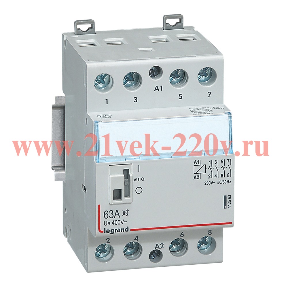 Бесшумный модульный контактор серии CX3 от производителя Legrand представляет собой электромагнитный прибор, в котором управление осуществляется как в дистанционном режиме, так и с помощью рукоятки управления. Он состоит из дугогасительной камеры и 4 контактов замыкающего типа. Устройство выполняет свои функции в цепи переменного тока. Оно рассчитано на номинальный ток нагрузки до 63 Ампер при напряжении в электроцепи 400 Вольт. Управляющее напряжение на катушки составляет 230 Вольт. Контактор шириной 2 модуля имеет 4 полюса и оснащен 3-х позиционным рычагом управления. Установка оборудования осуществляется на симметричную монтажную рейку EN 50-055 одной или двумя пластмассовыми защелками или Дин-рейку шириной 35 мм. Корпус устройства выполнен из полиамида, ударопрочного материала устойчивого к горению. Модульный контактор широко используется в быту или на производстве. Его применяют для включения электрообогревательных приборов или водонагревателей, для управления вентиляционными установками, а также для запуска мощных двигателей или силового оборудования.