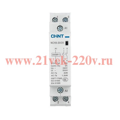 Модульные контакторы NCH8 предназначены для управления нагрузками в сетях переменного тока напряжением до 400В и частотой 50/60 Гц с номинальным током до 63 А. Они применяются в качестве устройства для дистанционного управления нагрузками, эксплуатирующимися в категориях применения AC-7b и AC-7a (не индуктивная нагрузка или нагрузка с малой индуктивностью / резистивные электропечи, бытовые приборы и аналогичные потребители). Контакторы не предназначены для отключения токов короткого замыкания, поэтому их следует использовать в комплекте с соответствующим аппаратом защиты.