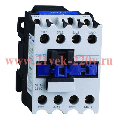 Компактный трехполюсный магнитный пускатель 25А с цепью управления 230 Вольт, 1 нормально открытый контакт, Чинт.