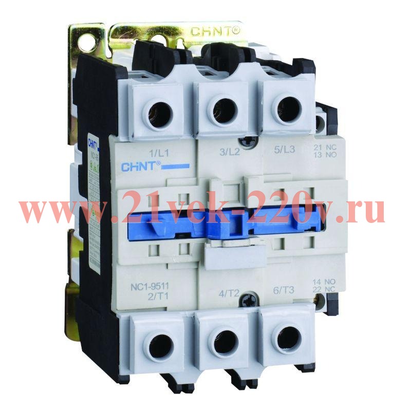 Трёхполюсный контактор от компании CHINT для цепей управления постоянного тока. Номинальный рабочий ток данной модели составляет 95 ампер. Аппарат используется для частых дистанционных коммутаций электрических цепей. Совместно с тепловым реле CHINT обеспечивает защиту от сверхтоков. Контактор серии NC1 является универсальным, поскольку может использоваться в качестве магнитного пускателя, контактора с выдержкой времени и др. Это стало возможным благодаря наличию присоединяемых блоков и прочих аксессуаров. Коммутационный аппарат имеет 2 вспомогательных контакта - 1НО и 1НЗ. Номинальный рабочий ток контактора составляет 95А. Катушка управления рассчитана на номинальное напряжение 220В DC. Контакторы NC1 уже заслужили особое внимание в профессиональной среде. Конструкция базируется на популярной серии CJX2 с некоторыми доработками, чтобы соответствовать современным требованиям к коммутационным аппаратам. Также переименование позволило унифицировать названия всего модельного ряда CHINT. Данную серию можно использовать для коммутации электрических цепей при работе с целым рядом промышленного оборудования. К тому же совместное применение контакторов NC1 с тепловыми реле позволяет защищать потребителей электроэнергии от сверхтоков. Серия отличается широким диапазоном номинальных токов. Доступны модели номиналом от 9 до 95 А. Ещё одна особенность заключается в широких возможностях совместного использования с другими узлами и агрегатами. Присоединяя дополнительные блоки к контактору NC1, можно получить: