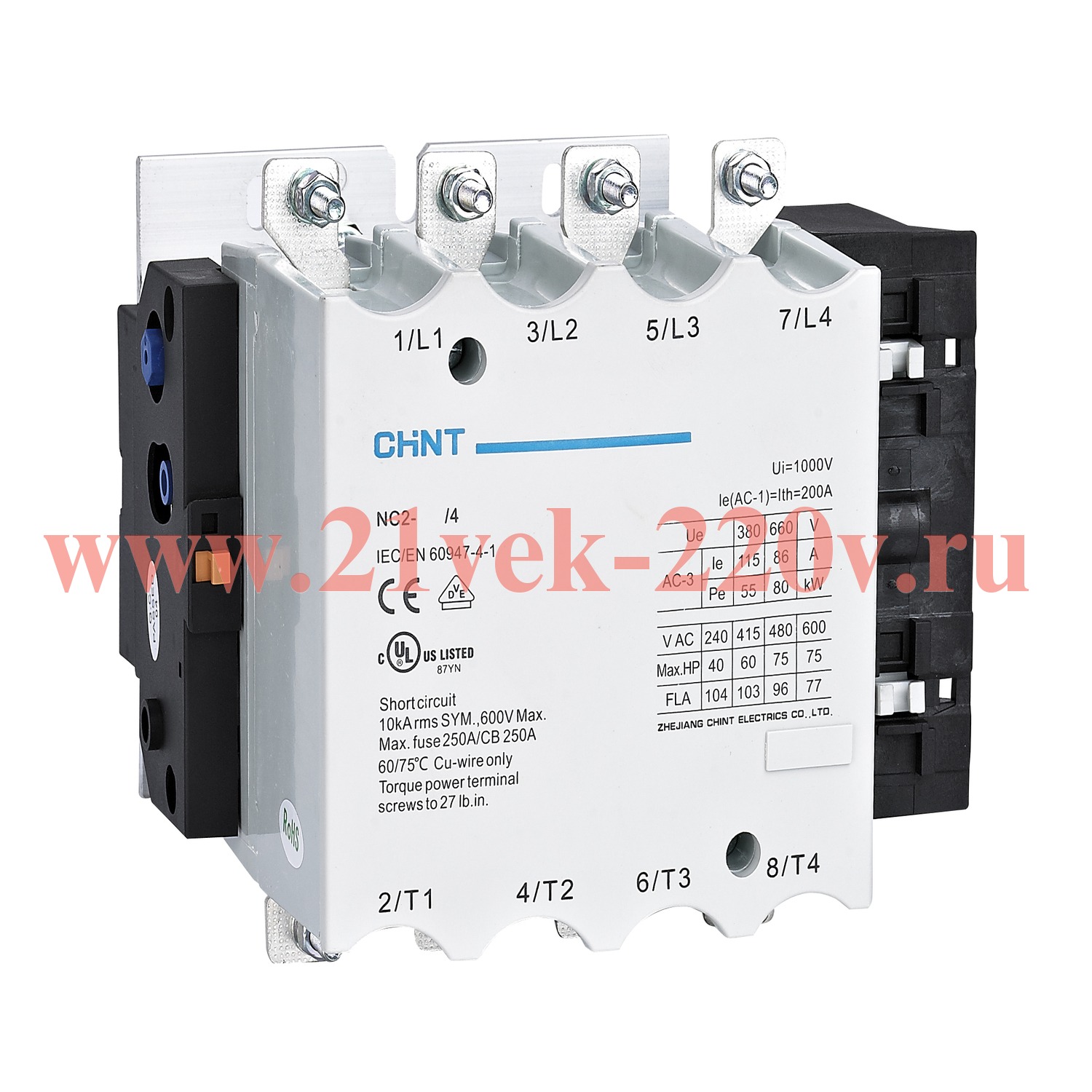 Контактор NC2-150/4 150А 4п 220-240В/АС3 50Гц (R) CHINT