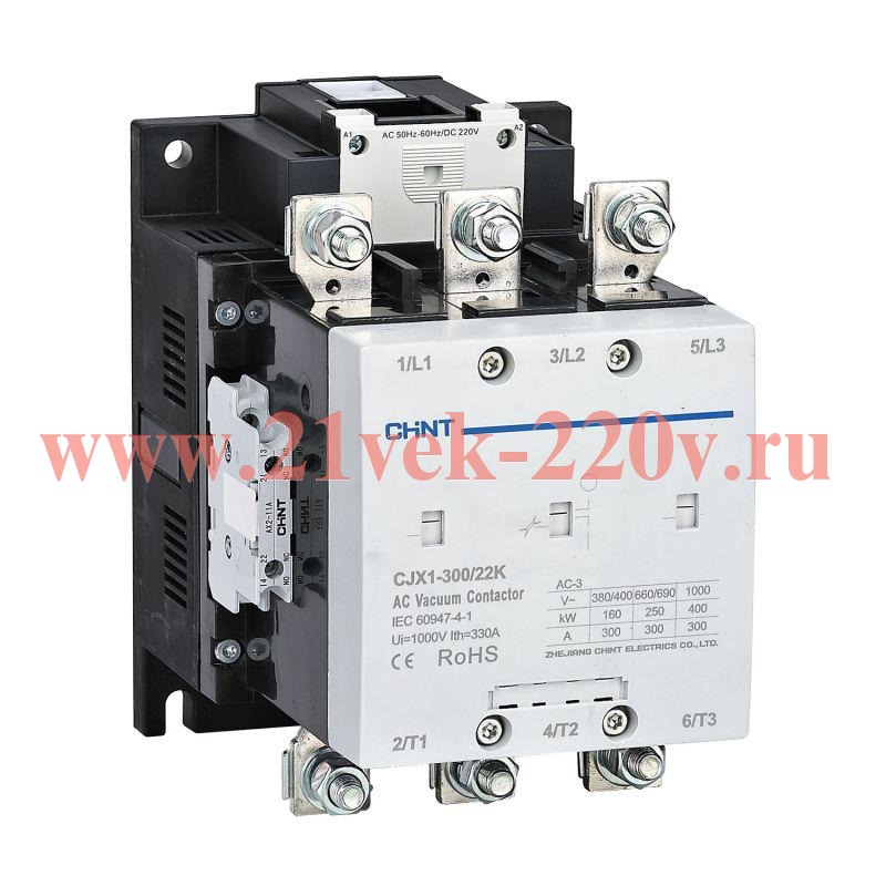 Контактор вакуумный CJX1-300/22K 300А(АС3) 2НО+2НЗ AC/DC 220В 50/60Гц CHINT