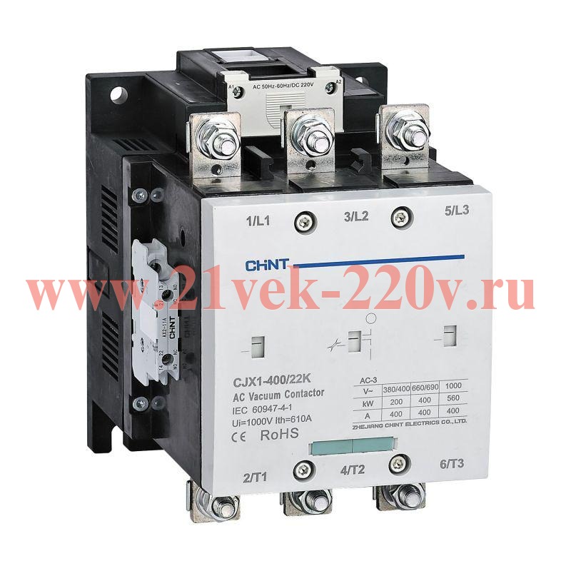 Контактор вакуумный CJX1-400/22K 400А(АС3) 2НО+2НЗ AC/DC 380В 50/60Гц CHINT