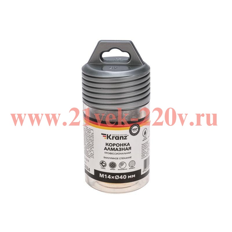 Высокоскоростная алмазная коронка предназначена для сверления отверстий в различных материалах, включая керамогранит, камень, керамику, бетон, кирпич и листовой металл, дерево и их комбинации. Она легко крепится к угловой шлифовальной машине (УШМ) с помощью резьбы М14 и работает в режиме безударного сверления. Технология высокотемпературного вакуумного спекания алмазов позволяет сверлить самые твёрдые материалы без водяного охлаждения. Высота алмазного слоя составляет 15 мм, а максимальная глубина сверления — 45 мм. Особенности коронки включают высокую плотность и равномерное распределение алмазов на рабочей кромке, что гарантирует эффективность работы и долгий срок службы инструмента.