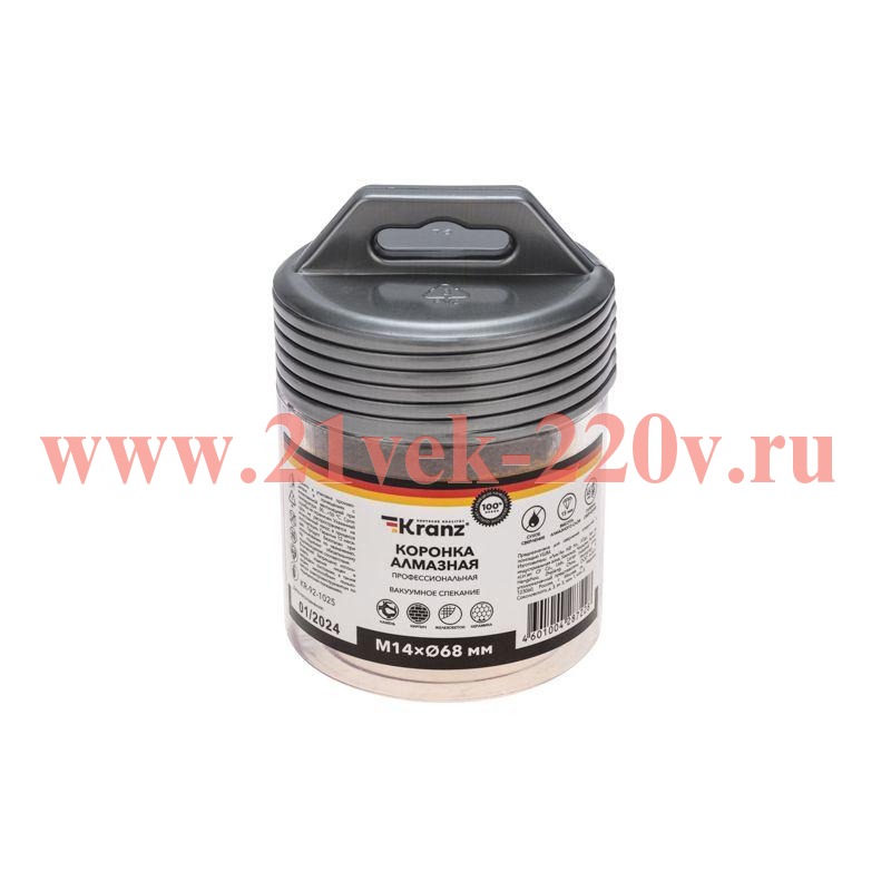 Высокоскоростная алмазная коронка предназначена для сверления отверстий в различных материалах, включая керамогранит, камень, керамику, бетон, кирпич и листовой металл, дерево и их комбинации. Она легко крепится к угловой шлифовальной машине (УШМ) с помощью резьбы М14 и работает в режиме безударного сверления. Технология высокотемпературного вакуумного спекания алмазов позволяет сверлить самые твёрдые материалы без водяного охлаждения. Высота алмазного слоя составляет 15 мм, а максимальная глубина сверления — 45 мм. Особенности коронки включают высокую плотность и равномерное распределение алмазов на рабочей кромке, что гарантирует эффективность работы и долгий срок службы инструмента.
