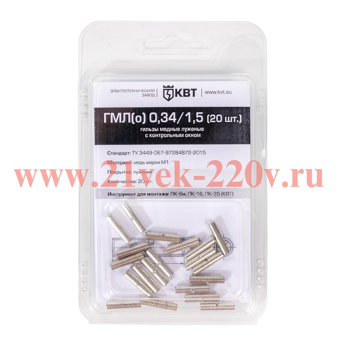 Гильза кабельная ГМЛ(о) 0.34/1.5 (20 шт) медная луженая с технологическим окном в мини-упаковке