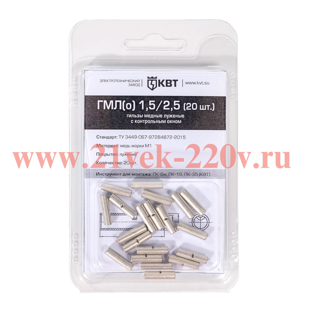 Гильза кабельная ГМЛ(о) 1.5/2.5 (20 шт) медная луженая с технологическим окном в мини-упаковке SKU, ГМЛ(о)-1.5/2.5 (20 шт.)