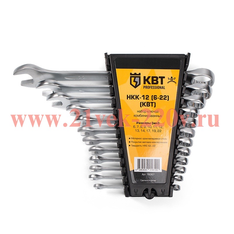 Набор гаечных комбинированных ключей НКК-12 (6-22) серия KBT-PROFESSIONAL для монтажа гаек и болтов с шестигранной головкой SKU. НКК-12 (6-22), КВТ монтаж и демонтаж резьбовых соединений при проведении слесарно-монтажных, авторемонтных, сантехнических работ.
