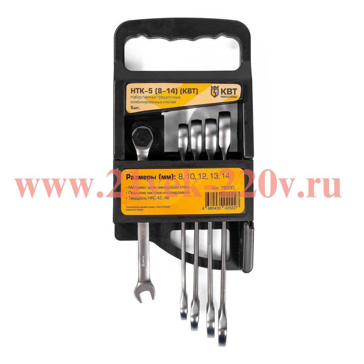 Набор гаечных комбинированных трещёточных ключей НТК-5 (8-14) серия KBT-PROFESSIONAL для монтажа гаек и болтов с шестигранной головкой SKU. НТК-5 (8-14), КВТ монтаж и демонтаж резьбовых соединений в ограниченном пространстве при проведении слесарно-монтажных, авторемонтных, сантехнических работ.