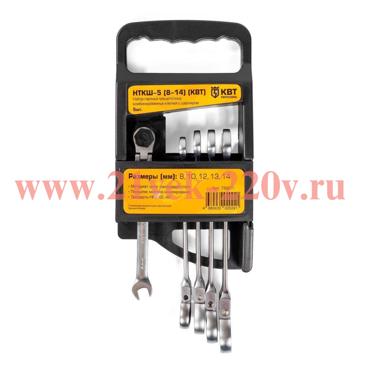 Набор гаечных комбинированных трещёточных ключей с шарниром НТКШ-5 (8-14) серия KBT-PROFESSIONAL для монтажа гаек и болтов с шестигранной головкой SKU. НТКШ-5 (8-14), КВТ монтаж и демонтаж резьбовых соединений в ограниченном пространстве при проведении слесарно-монтажных, авторемонтных, сантехнических работ.