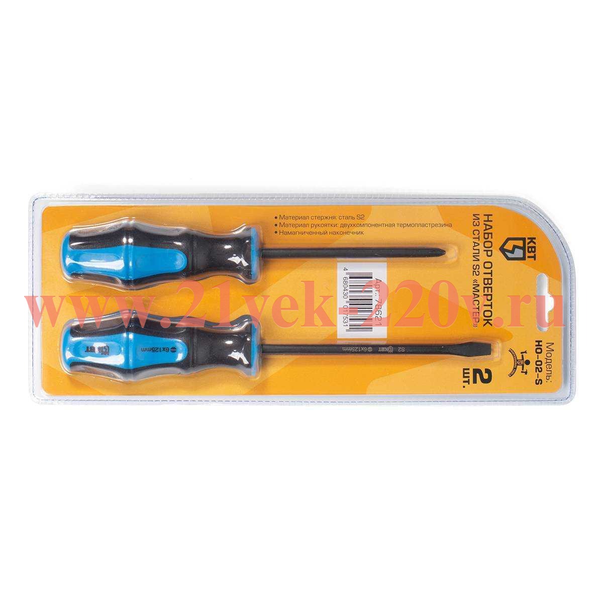 Набор отвёрток из стали S2 НО-02-S серия МАСТЕР для проведения слесарно-монтажных работ, стержни из высокопрочной стали SKU, НО-02-S серия МАСТЕР, КВТ проведение слесарно-монтажных работ.