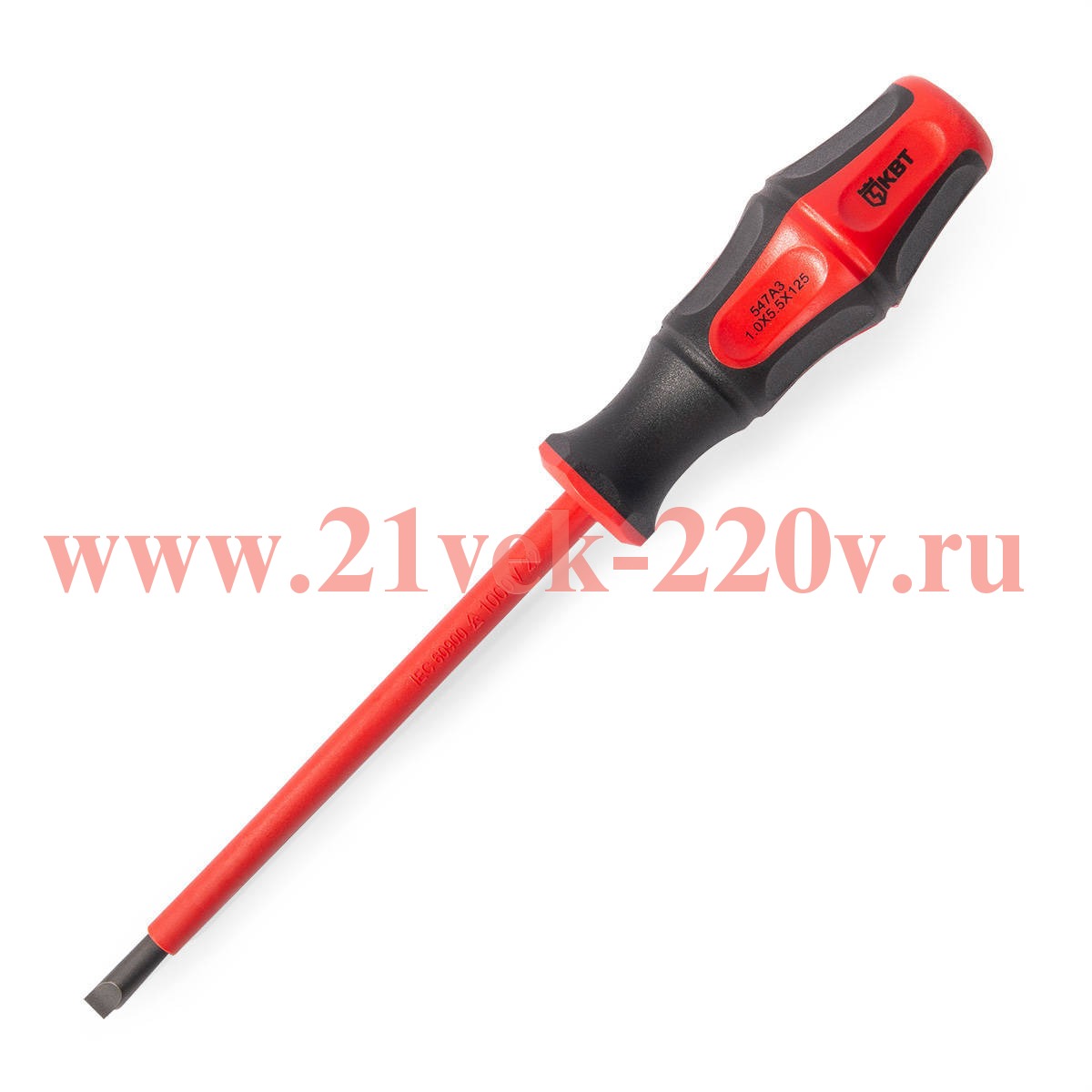 Отвёртка диэлектрическая шлицевая 5.5х125 серия ПРОФИ для работ под напряжением до 1000 В SKU, 5.5х125, КВТ проведение электромонтажных работ под напряжением до 1000 В.