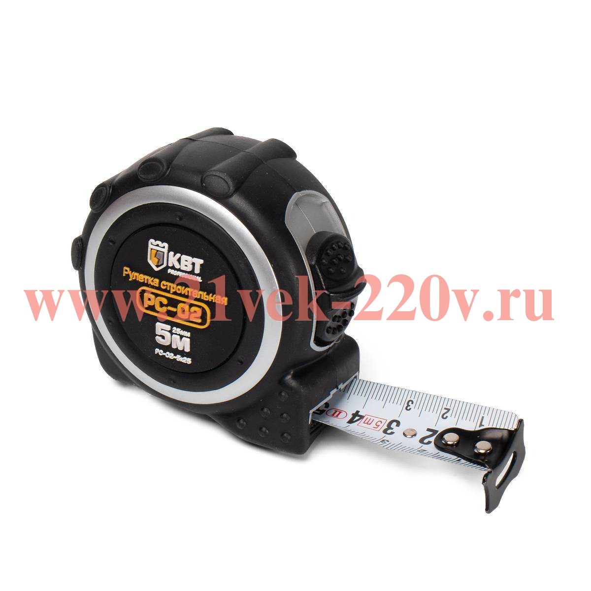Рулетка строительная РС-02-5х25 серия ПРОФИ 2-го класса точности с переключателем постоянной фиксации SKU, РС-02-5х25, КВТ Измерения (до 5 метров) при монтажных и строительных работах.