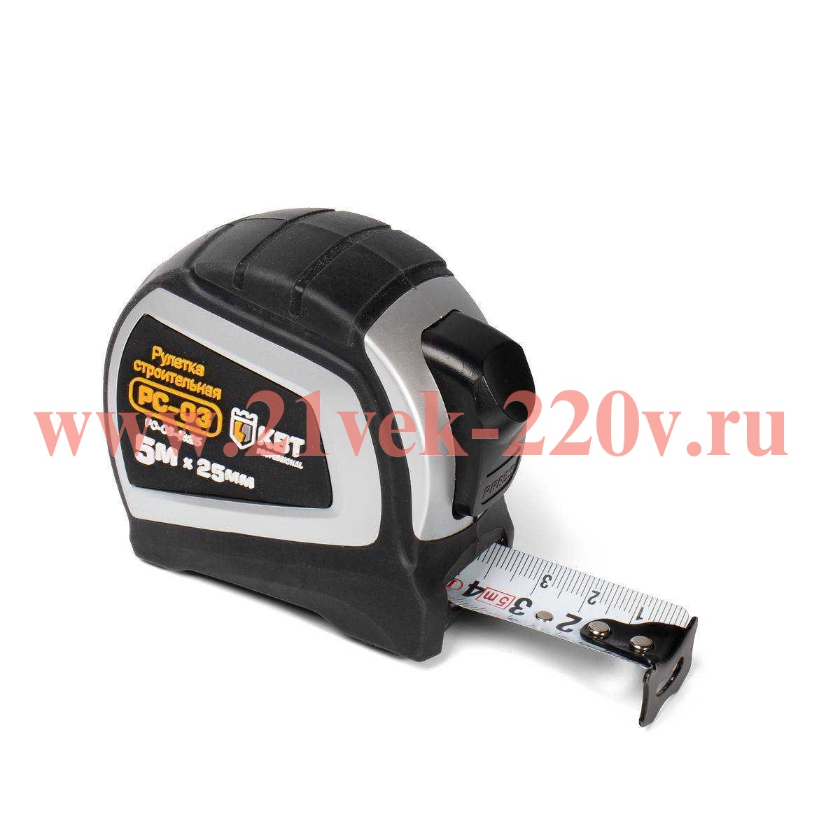 Рулетка строительная РС-03-5х25 серия ПРОФИ 2-го класса с функцией автоматической фиксации ленты и кнопкой разблокировки SKU, РС-03-5х25, КВТ Измерения (до 5 метров) при монтажных и строительных работах.