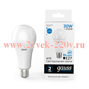 Светодиодная лампочка грушевидной формы Гаусс, мощностью 30 Ватт с цоколем E27, холодный дневной свет