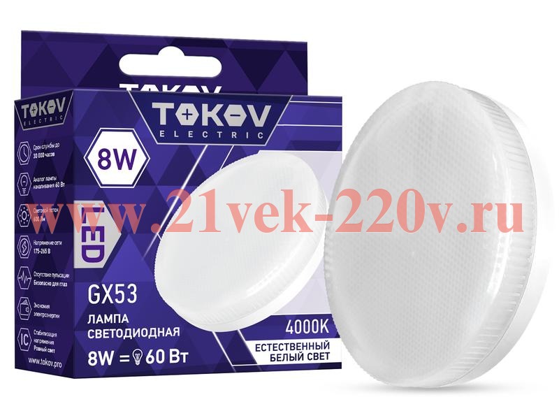 Лампа светодиодная 8Вт Tablet 4000К GX53 176-264В TOKOV ELECTRIC TKE-GX53-8-4K