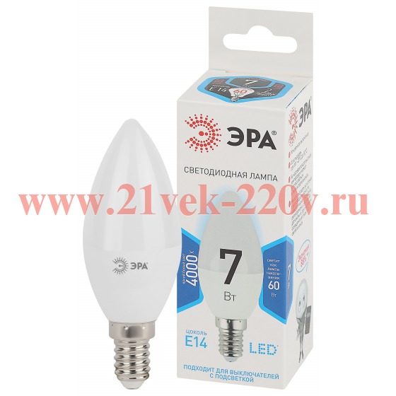 Бытовая светодиодная лампа ЭРА Серии Стандарт, создаёт яркое ровное освещение и экономит до 90% электроэнергии по сравнению с лампой накаливания с аналогичным световым потоком. Конструкция светодиодных ламп намного сложнее, чем ламп накаливания. Если упрощённо, то источником света в таких лампах являются светодиоды, которые состоят из полупроводникового кристалла и оптической системы. Светодиоды находятся на монтажной плате. Рассеиватель (обычно из матового пластика) предназначен для более равномерного распределения световых потоков, излучаемых светодиодами. Срок службы — это среднее время полноценной работы ламп до их выхода из строя. Этот показатель у светодиодных ламп в 50 раз выше, чем у ламп накаливания (50000 часов против 1000 часов). Выпускаемые светодиодные лампы имеют более широкий диапазон цветовых температур — примерно от 2500 до 6200 градусов Кельвина (от тёплого белого света до холодного белого света).
