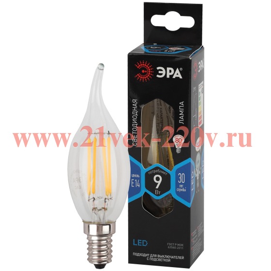 Лампа светодиодная ЭРА F-LED BXS-9W-840-E14 9Вт филамент свеча на ветру нейтральный белый свет Е14