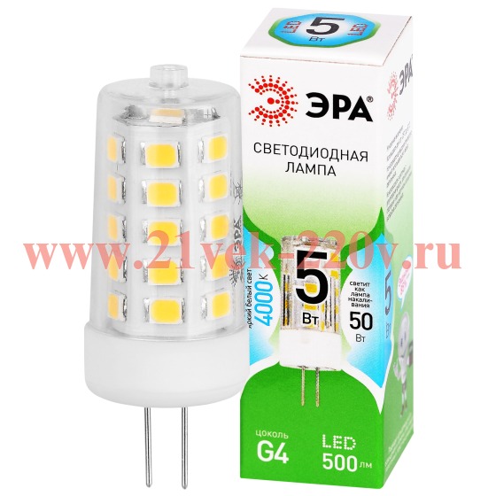 Лампа светодиодная ЭРА GREEN LINE LED G4-JC-5W-840-12V GL 5Вт капсула 12В яркий белый свет G4
