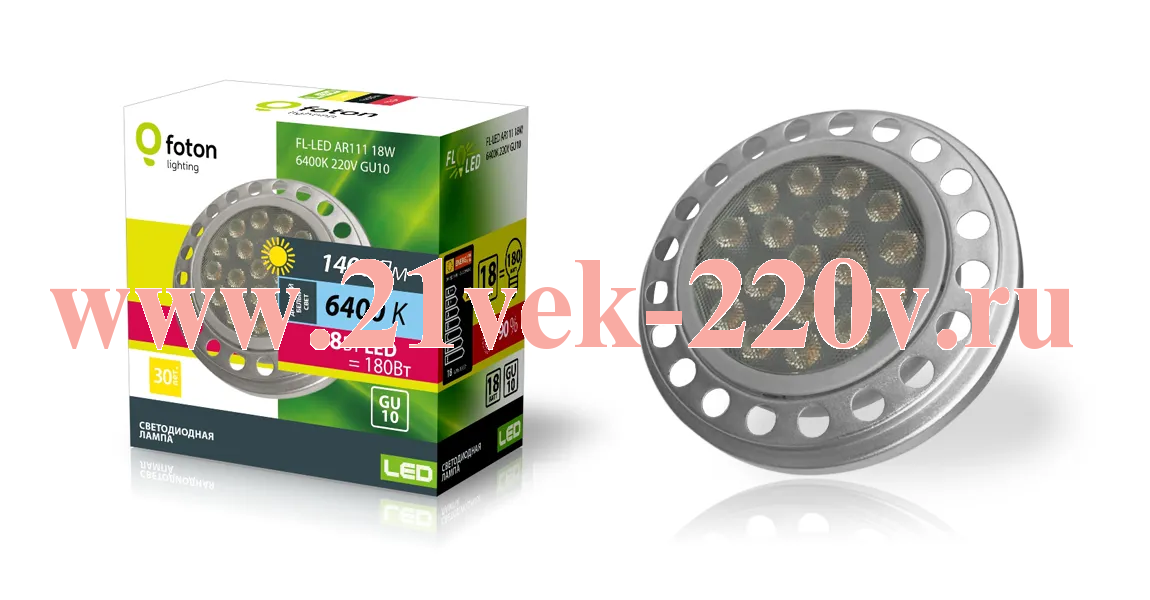 Светодиодная лампа FOTON FL-LED AR111 18W 30° 6400K 220V GU10 мощностью 18 Ватт с цоколем GU10 дневного белого света.