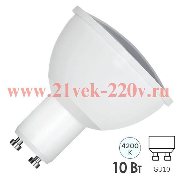Энергосберегающая LED лампа акцентного освещения мощностью 10 Вт с цоколем GU10 белого света для точечных светильников 615114