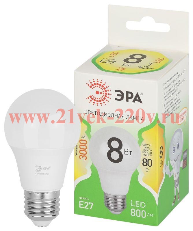 Лампа светодиодная GREEN LINE A60-8W-830-E27 GL 8Вт 3000К свет тепл. E27 Эра