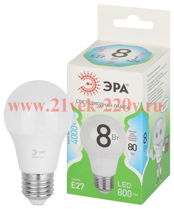 Светодиодная лампа ЭРА LED A60-8W-840-E27 GL серии Green Line — эффективное решение для основного освещения. Лампочка Е27 мощностью 30 Вт излучает нейтральный белый свет (4000K) без мерцания. Классическая колба A60 (груша) и стандартный цоколь E27 делают её совместимой с люстрами, бра, настольными и напольными светильниками. Высота лампы: 108 мм. Светодиоды потребляют меньше электроэнергии и служат значительно дольше традиционных ламп накаливания: до 30 000 часов. Работает от сети 220 В, эквивалентна 80 Вт лампе накаливания. Светодиодные лампы ЭРА подходят для жилых и коммерческих помещений и обеспечивают стабильное освещение.