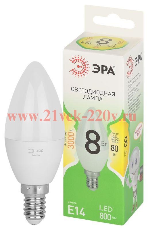 Лампа светодиодная ЭРА GREEN LINE LED B35-8W-830-E14 GL 8Вт свеча теплый свет E14