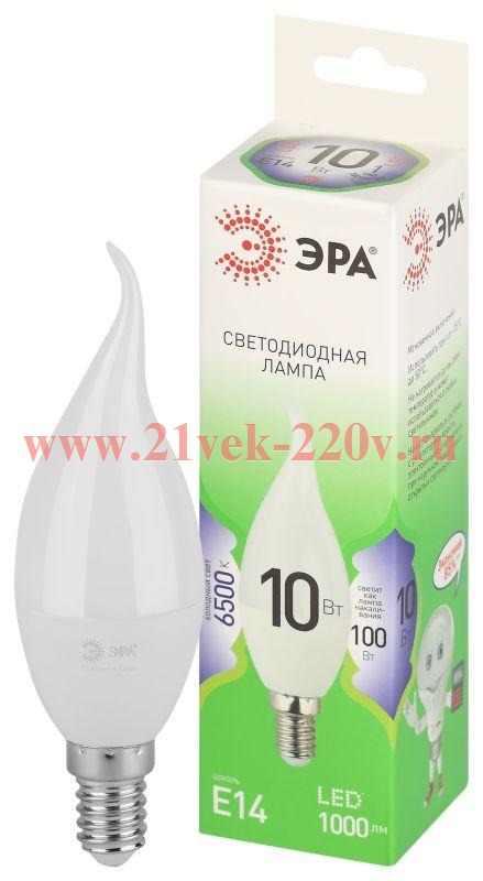 Лампа светодиодная ЭРА GREEN LINE LED BXS-10W-865-E14 GL 10Вт свеча на ветру холодный свет E14