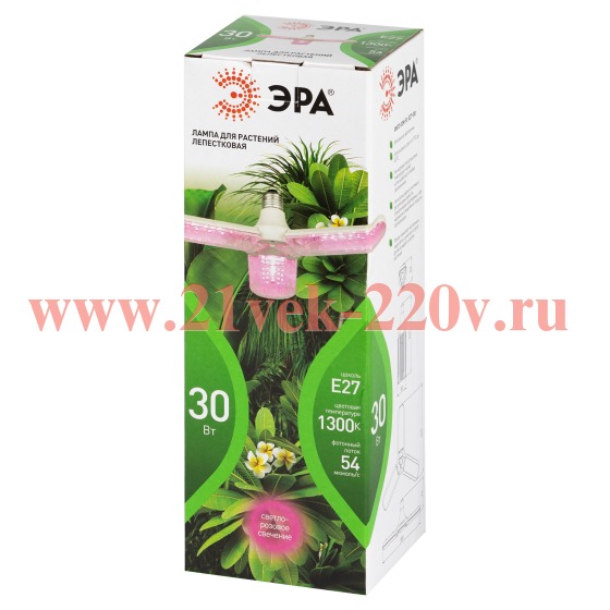 Фитолампа для растений светодиодная ЭРА GREEN LINE ФИТО-30W-PL-E27-GR 3-х лепестковая красно-синего спектра 30 Вт Е27