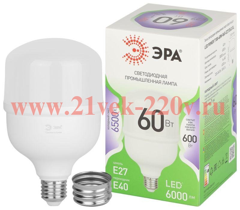 Светодиодная лампа ЭРА LED POWER T100-60W-865-E27/E40 GL серии Green Line — универсальный и энергоэффективный источник света. В комплекте предусмотрен сменный цоколь Е40, что позволяет использовать лампочку в различных помещениях. Цветовая температура 6500К излучает холодный белый свет без мерцаний. Высота лампы: 165 мм. Плафон в форме колокола обеспечивает равномерное распределение света. Лампочка ЭРА Е27 отличается низким энергопотреблением, долгим сроком службы и устойчивостью к перепадам напряжения. Работает от сети 220 В, эквивалентна 600 Вт лампе накаливания. Подходит для освещения жилых помещений, офисов, магазинов и производственных площадей.