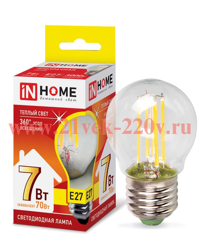 Лампа светодиодная LED-ШАР-deco 7Вт шар прозрачная 3000К тепл. бел. E27 810лм 230В IN HOME